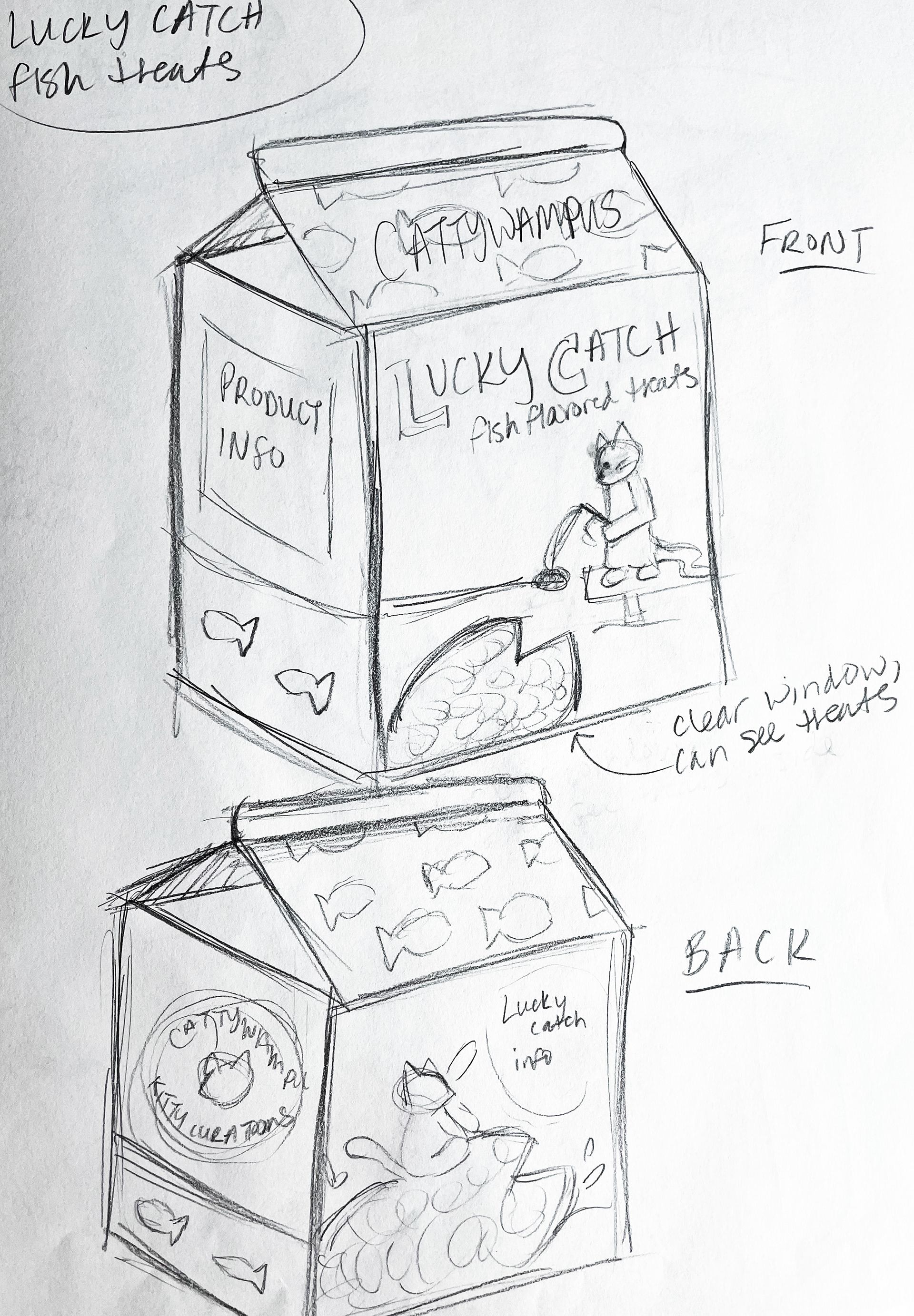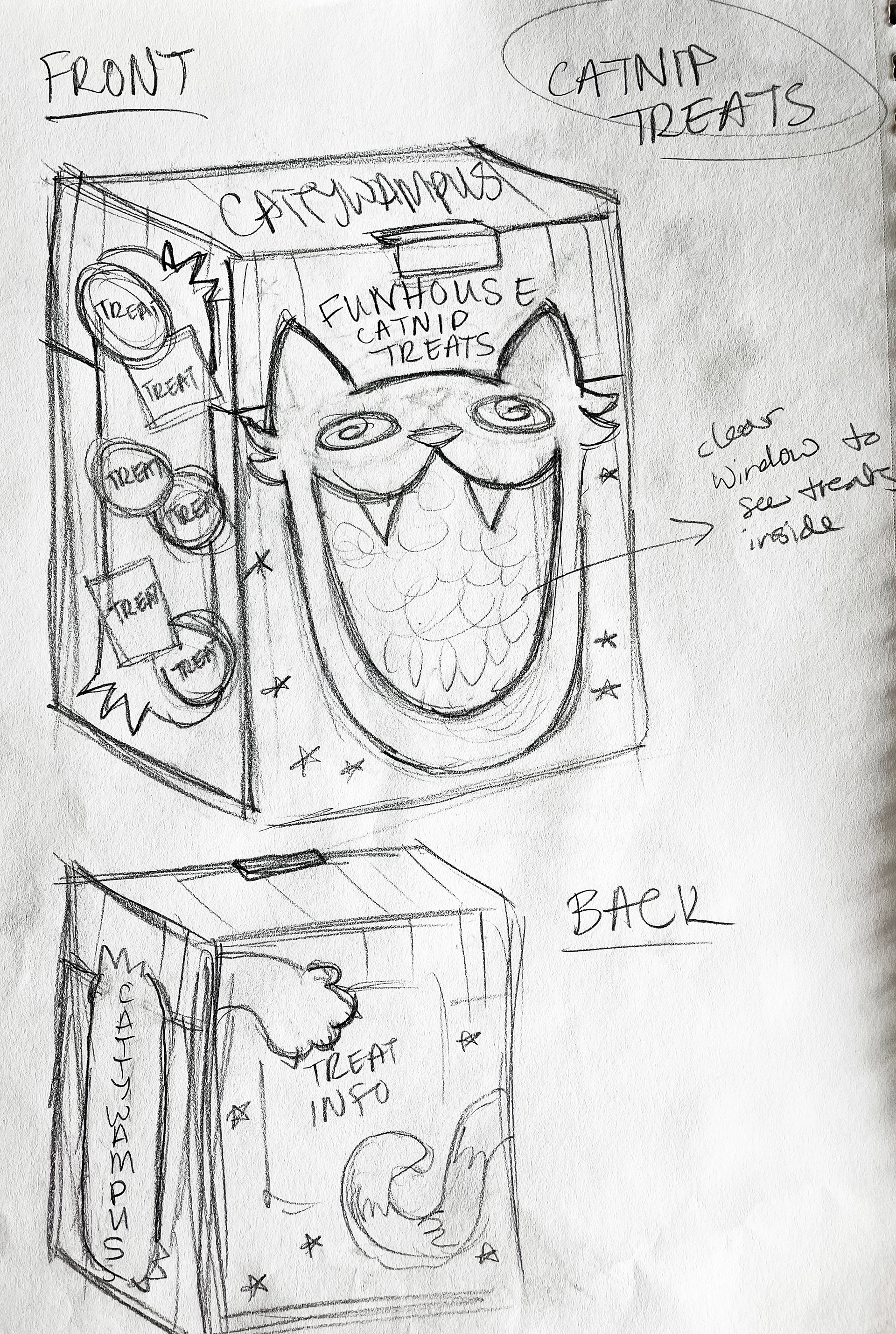 For my senior project, I chose to focus on packaging design. I developed the brand identity for Cattywampus, a fictional pet wellness brand for cats. After researching the pet wellness market and identifying key consumer factors, I designed a playful, bold visual identity inspired by vintage animal illustrations and vibrant colors. This process involved consistent exploration, research, and print trials. The final deliverables were presented at our graduating senior showcase.