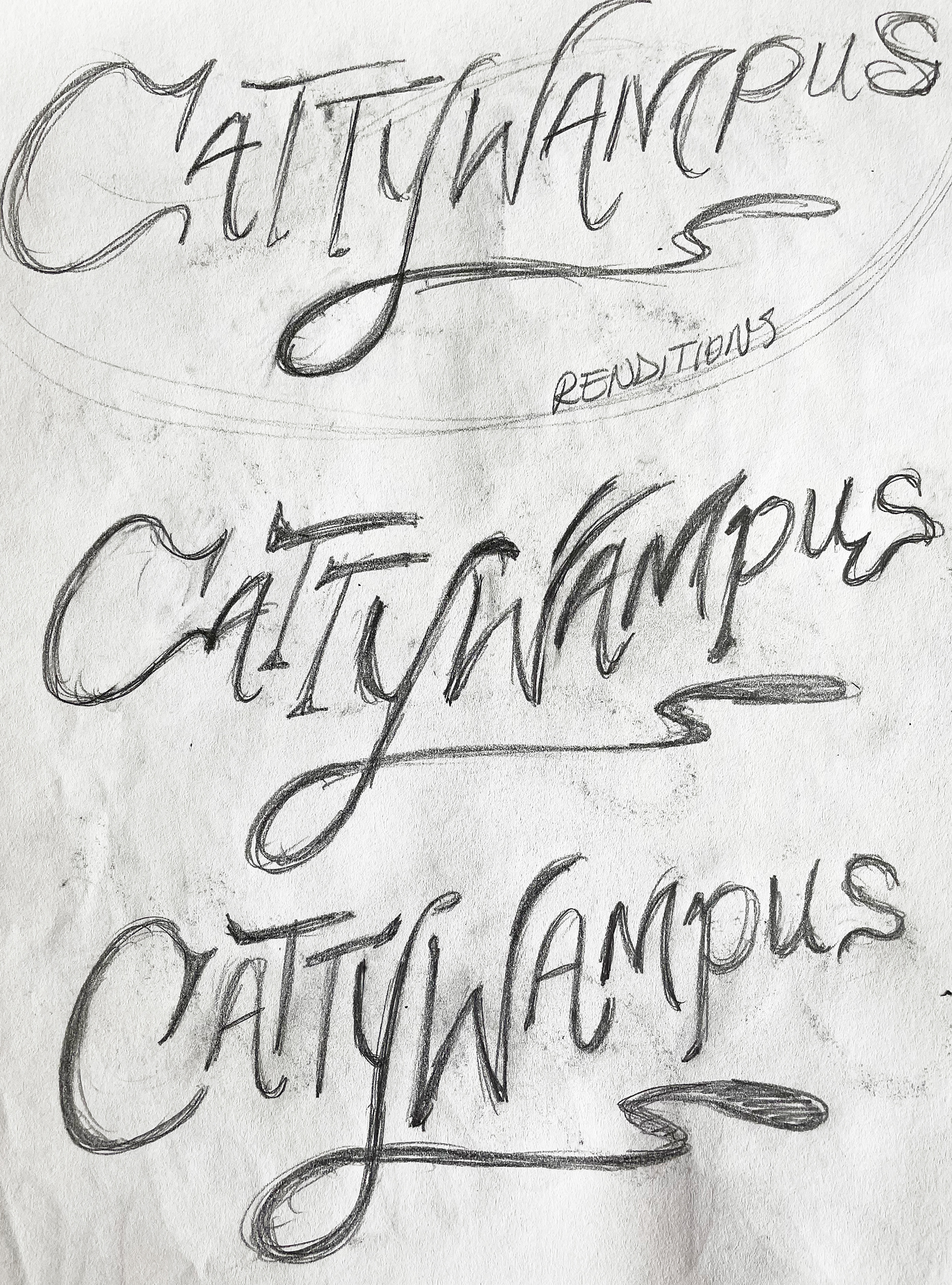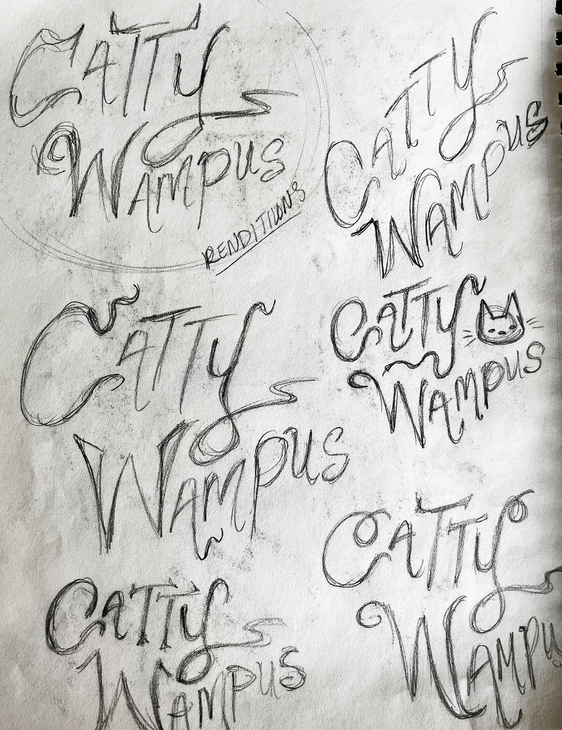 Embracing the playfulness of the brand, I explored any and all ideas of what Cattywampus feels like. Noticing the similar details shared in each design, and referencing inspirational materials, I used these observations to create the final logos and word mark.